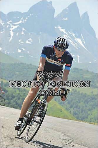 Inmiddels is het middag geworden, en is de temperatuur tot ruim 30 graden opgelopen. Dat is te merken. Langs de weg loopt hier en daar water van de rotsen en verschillende fietsers kunnen de verleiding niet weerstaan. Links en rechts langs de kant liggen renners met hun hoofd onder een waterstraal, of soms languit in een beekje. Het lijkt of vooral de Denen en Britten last hebben van de hitte. Op de top van de Croix de Fer heb ik het ook wel even gehad. Mijn voeten zijn dik geworden van de hitte. en doen flink pijn. Schoenen uit en water erover helpt een beetje. Op de top van de Croix de Fer is weer een ravitaillering. Als ik water wil halen, vraagt een vrijwilliger of ik het in mijn bidon wil, of dat hij het maar meteen over mijn hoofd zal gieten. Hitte!