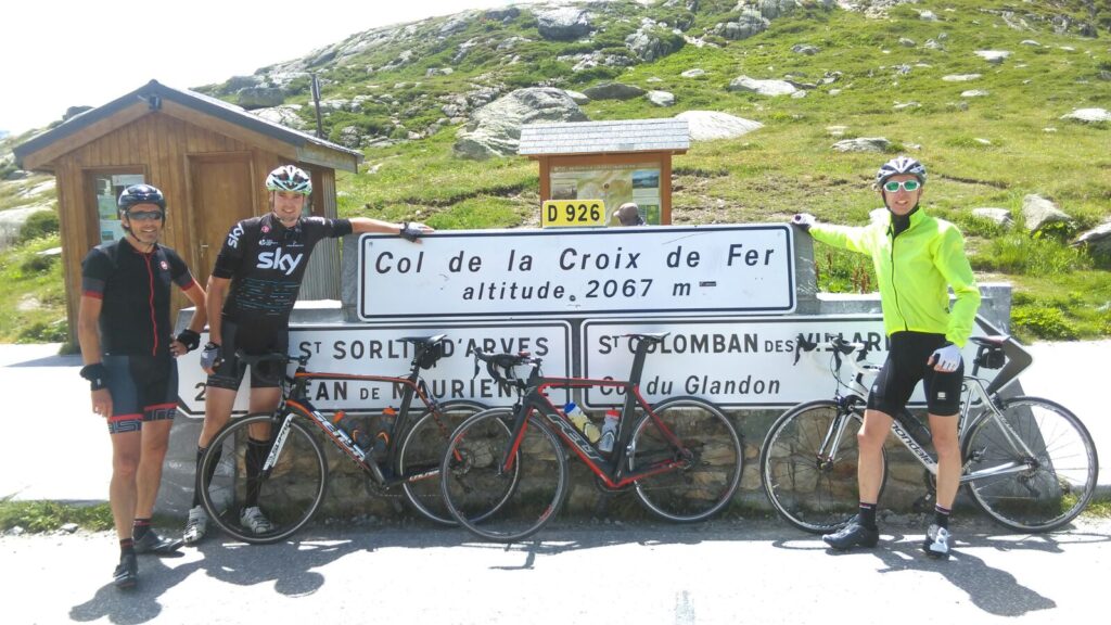 Ondertussen breekt de week van de Marmotte aan. De laatste voorbereidingen worden getroffen. Het ros gaat voor een laatste grote beurt naar Nieuwold en er wordt nog wat sportvoeding ingeslagen. Gosse ‘le patron’ fietst in de Vogezen de cyclo, L’Alsacienne als voorbereiding en vertrekt daarna richting Le Bourg d’Oisans om daar kwartier te maken. Jeroen, Marcel, Oene en Michiel vergezellen hem daags erna. Uiteraard ook om de beentjes alvast wat te laten wennen aan het bergverzet. Ikzelf ga met John, Albert, Bert en Erik op donderdagmorgen richting de Alpen. Als wij in het gehucht Le Rive aankomen, hebben de anderen ondanks het matige weer al de nodige (klim)kilometers gemaakt. We installeren ons in het wat krakkemikkige maar knusse onderkomen en maken ons klaar voor de eerste verkenning. We kiezen voor de Col d’Ornon, een colletje van de 2e categorie, die in etappe 17 van deze Tour samen met de Croix de Fer, Telegraphe en de Galibier op het programma staat. Helaas laat het weer zich op de ‘vrouwenberg’ van zijn slechtste kant zien. De regen en wind geselt ons als we aankomen op de 1371 meter hoge top. We maken gauw een foto en dalen af richting Le Bourg d’Oisans om thuis weer op te warmen. ’s Avonds eten we een pizza bij een camping in de buurt en proosten we op Michiels 42e verjaardag. Voor de volgende dag hebben we serieuzere plannen.