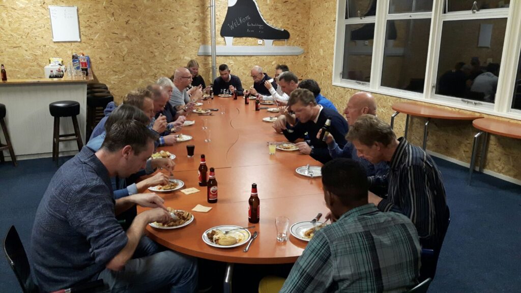 Om 19.00 uur stond er een chinees buffet klaar in de kantine van de Vereniging Winsumer Ijsbaan. Een groep van ca.20 personen was aanwezig. Het was een smakelijke maaltijd. Er werd door velen dan ook voor de 2e keer een bord vol geschept. Er werd gezellig gepraat en de tijd vloog voorbij. Het werd tijd om huiswaarts te gaan. Heb een leuke dag beleeft. Fietsen en eten, een prima stel!