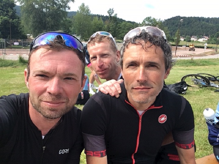 De 179 kilometer van gisteren waren slechts een warming-upje voor vandaag. De 7e etappe is namelijk de langste in lijn. 192 kilometer en 2000 hoogtemeters. Michiel stapt vandaag niet op. In één van de volgauto’s geeft hij mentale steun en op de verzorgingsposten polst hij het humeur en de benen van de andere mannen. Albert, Marcel en Ronald besluiten allemaal in een eigen groep te gaan rijden en zonder dat we het doorhebben rijden we slechts op een paar minuten van elkaar. De zwaarte van de etappe zit hem vooral in de lengte. Marcel is als eerste binnen, vlak daarachter gevolgd door Albert. 25 kilometer voor het einde zat Ronald hier vlak achter, maar hij besluit een groepje renners op sleeptouw te nemen die het heel zwaar hebben (alle lange trainingen van het afgelopen jaar betaalden zich deze etappe uit, met goede benen). Hij kan daardoor zo aanschuiven voor het avondeten wanneer hij in La Roche, fris en fruitig, over de finish rijdt. Het gevoel dat The Ride erop zit dringt bij iedereen een beetje door. We moeten nog 1 etappe, maar die laatste etappe, dat moet wel goedkomen. Er worden wat biertjes gedronken, een tentje wordt ingeruild voor een gehuurde blokhut en er wordt nagepraat over de afgelopen dagen. Tot de briefing plaatsvindt!