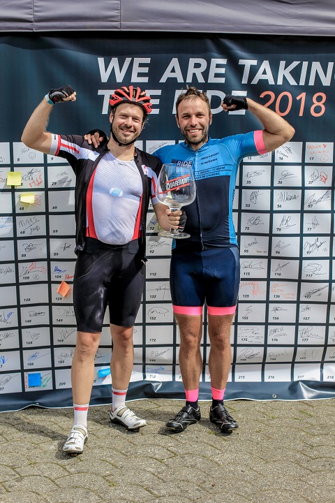 Wanneer we het podium oprijden schalt door de speakers: “De mannen van TFC uit Winsum, de mannen die het hardst tegen de wind in kunnen rijden”. Hebben we in die 60 van de 1300 kilometer toch nog een indruk achtergelaten.